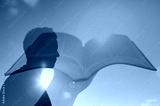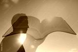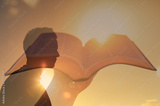 Young man looking to the sunrise with feelings of hope and strength. Hand holding bible. religious belief concept.