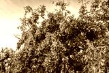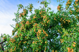 Sweet jujubes grow on jujube tree. Ripe date fruits in autumn season.