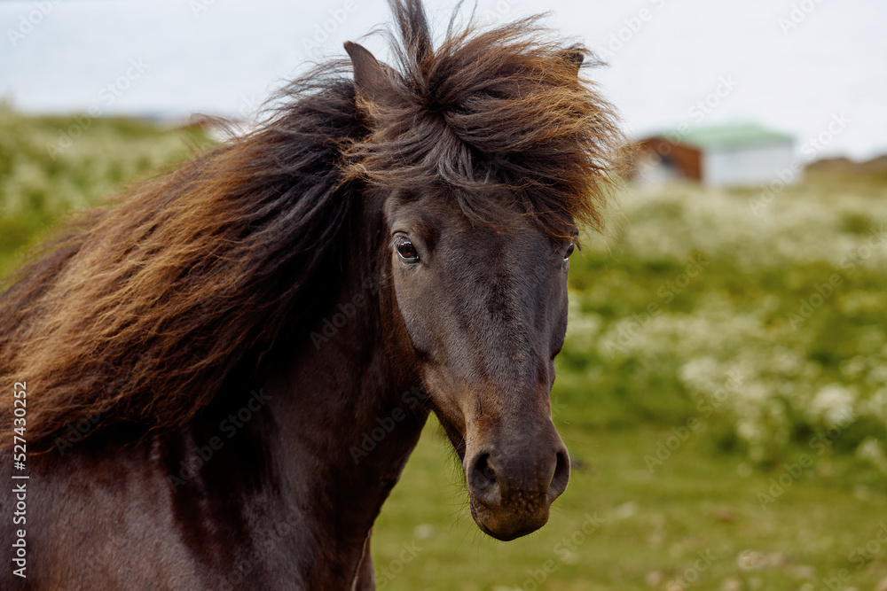 Portrait of a beautiful Icelandic brown horse. Iceland