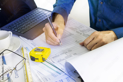 Project engineers check the construction documents of various systems.,Building construction and system work,Real estate and building business