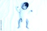 Top view happy newborn baby lying sleeps on a white blanket comfortable and safety at warmth place. Cute Asian newborn sleeping and napping on bed. Newborn Baby Care concept