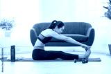 Calm of Asian woman in sportwear stretching muslce to warm up breathing and meditation with yoga at home.Healthy female stretching muscle comfortable and relax before exercise ready to workout