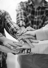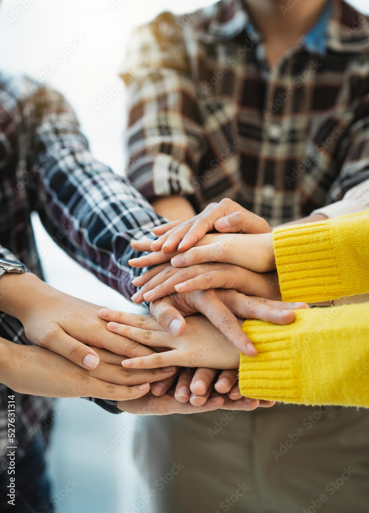 teamwork business join hand together concept, Business team standing hands together, Volunteer charity work. People joining for cooperation success business.
