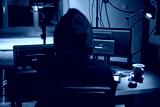 cybercrime, hacking and technology concept - male hacker in dark room writing code or using computer virus program for cyber attack