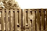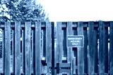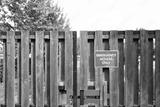 Shallow focus of a red Emergency Access Sign seen on a gated entrance to a hospital facility.