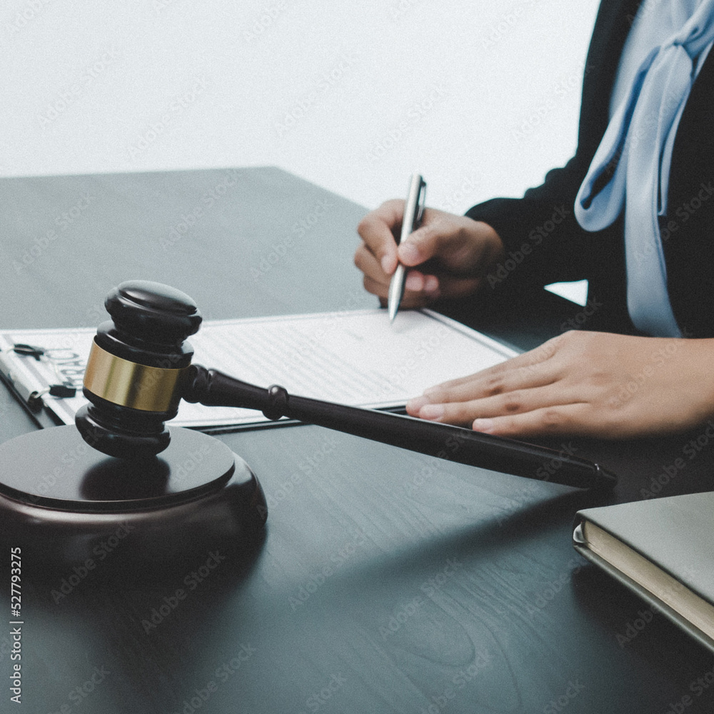 Lawyer or counselor works in the courtroom and negotiates with clients or complainants seeking justice on land encroachment, Law that validity and justice concept.