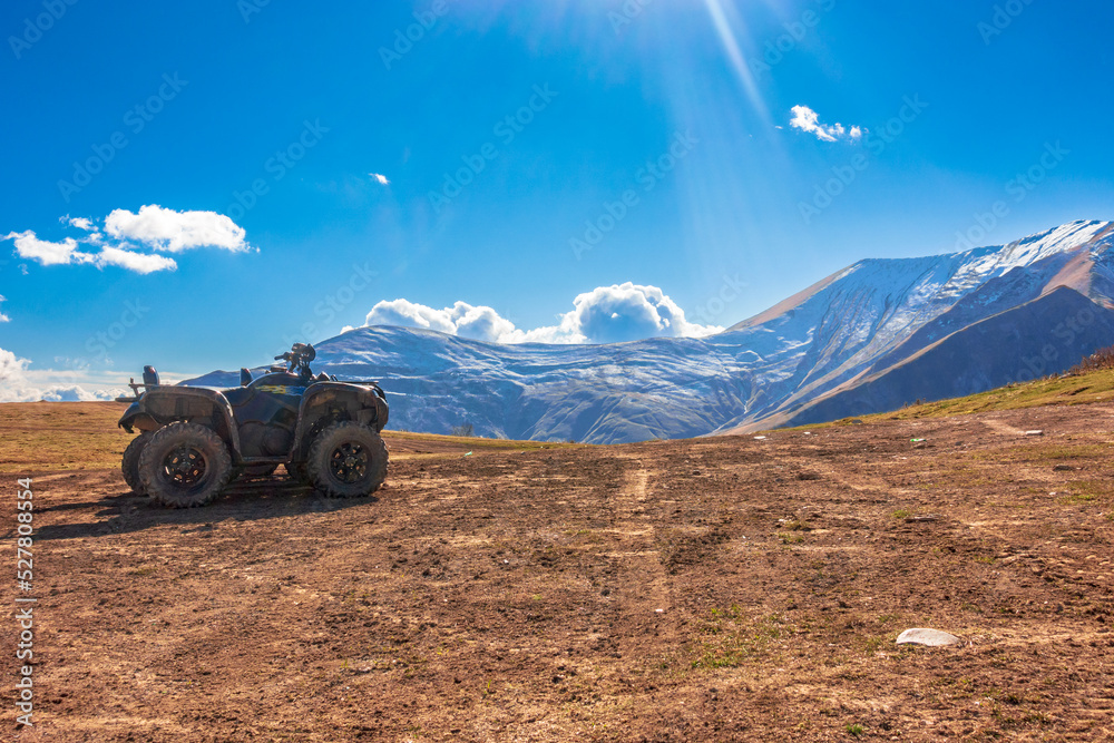 Quad bike in the mountains against the sky