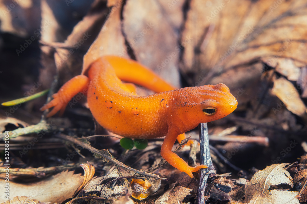 Red-spotted Newt Macro On Brown Leaves