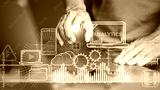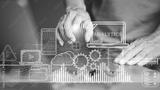 Businessman hands are analyzing the business, future big data analytics technology concept on the VR screen, data management and business marketing and financial reports to optimize development.