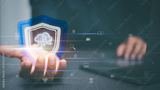 Businessman logging into cyberspace through secure online technology and protection and authentication, password privacy authentication and authentication, access to cybersecurity information.