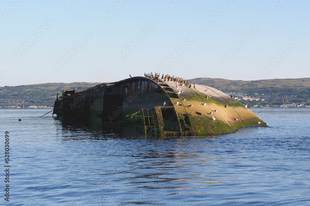 Shipwreck sugar boat at sea on the River Clyde viewed from Firth of Forth Scotland