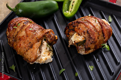 Jalapeno popper chicken wrapped in bacon and stuffed with jalapeno