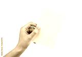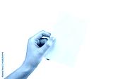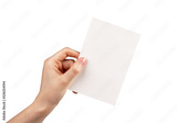 Hand holding postcard mockup isolated on white background. Letter, invitation, brochure, greeting template with place for text. Paper in rotated position.