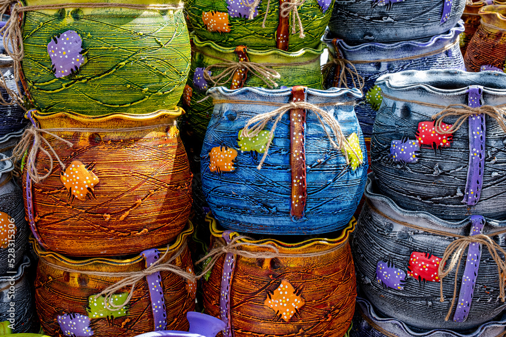 Traditional Romanian handmade ceramics market at the potters fair from Sibiu, Romania