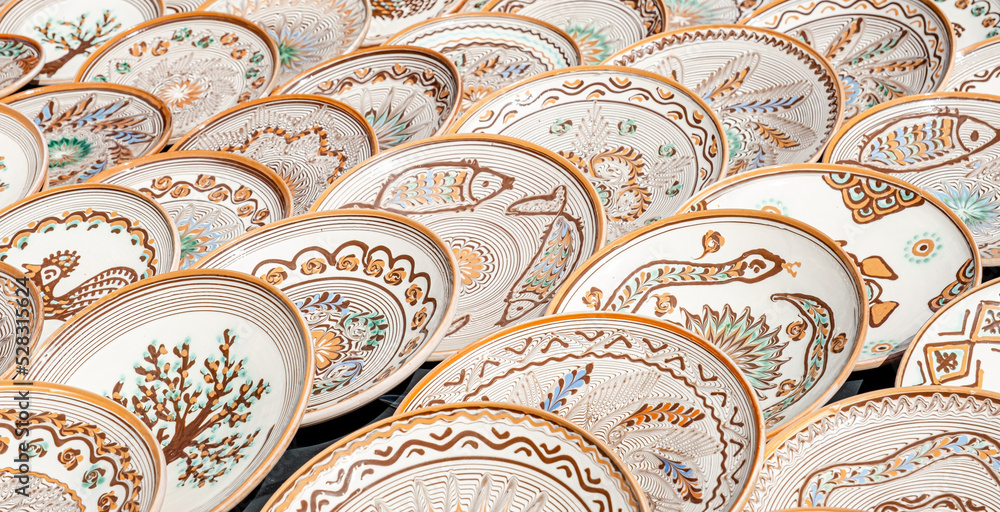 Traditional Romanian handmade ceramics market at the potters fair from Sibiu, Romania