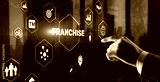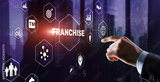 Businessman hand touching inscription Franchise marketing system