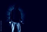 Double exposure thief or bandit man wearing black mask and holding gun on hand to make crime this a dangerous man with money background.
