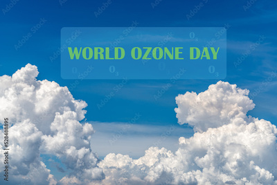 World Ozone Day concept. International Day for the Preservation of the Ozone Layer. Beautiful blue sky and white clouds abstract background. Cloudscape background. Blue sky and fluffy white clouds.