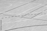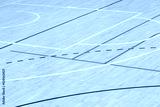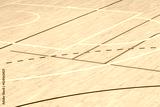 Wooden floor basketball, badminton, futsal, handball, volleyball, football, soccer court. Wooden floor of sports hall with marking lines on wooden floor indoor, gym court
