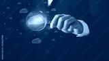 businessman holding a magnifying glass shows the use of cloud network technology to communicate and connect data servers around the world. with the innovation of online internet from virtual screen