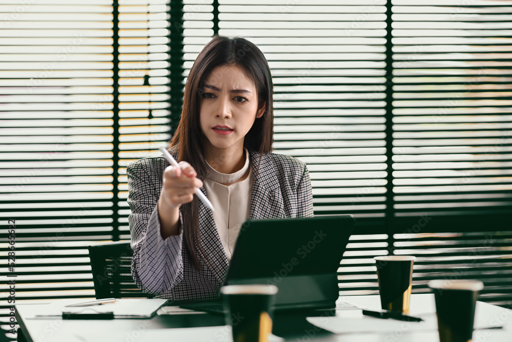 Dissatisfied boss scolding young employees during corporate meeting. Emotional pressure, stress at work concept