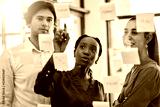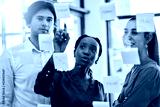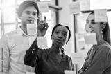 Working, post it planning and teamwork collaboration with notes of a office work team. Business strategy, corporate schedule or marketing moodboard of staff with diversity busy with a job project