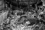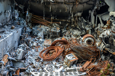 Close-up of the engine of a destroyed russian BMD-2 Airborne Fighting Vehicle after combat strike of Ukrainian armed forces