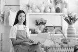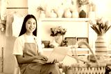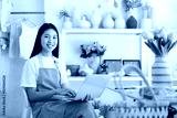 business owner smiling happily looking at the camera with be happy when reading news online.