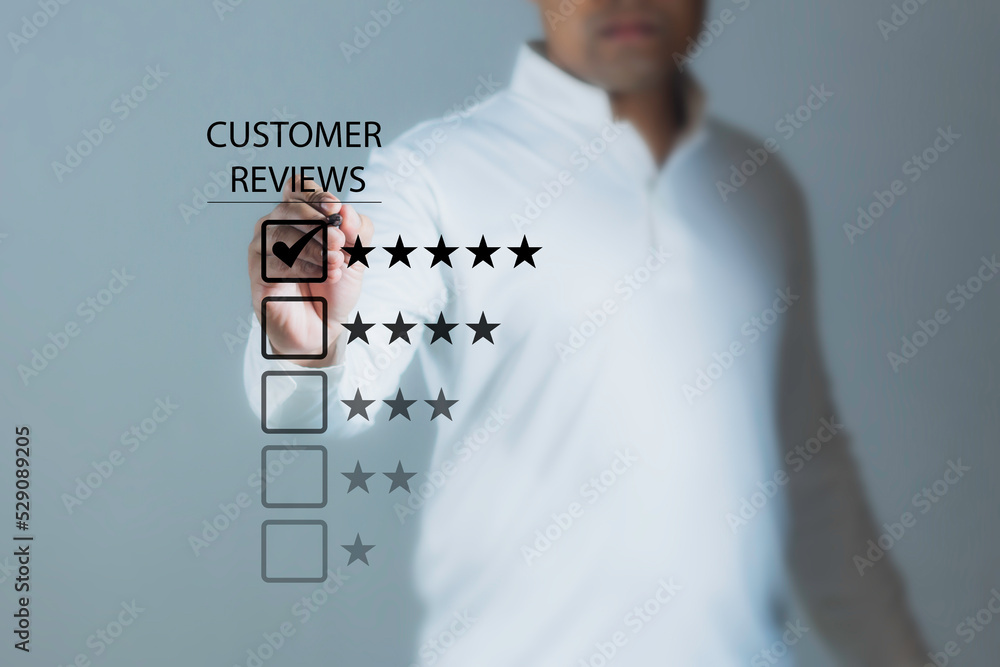 Business people are checking box to give satisfaction in service. Customer service and satisfaction concept.