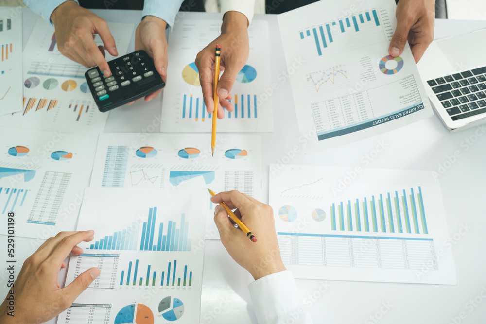 Startup asian business teamwork concept discussing graphs showing the results.
