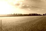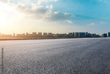 Asphalt road and modern city skyline with buildings scenery at sunset
