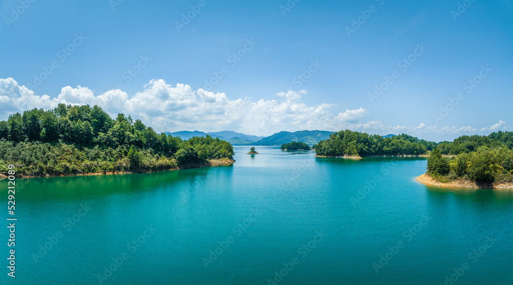 Beautiful Thousand Island Lake natural scenery in summer, Hangzhou, Zhejiang Province, China. Qiandao Lake is a large freshwater lake.