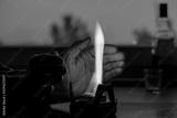 a man warmed his hands from an alcohol lamp in the absence of heating concept of the energy crisis in Europe caused by the rejection of fossil fuels. Blackout