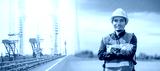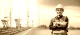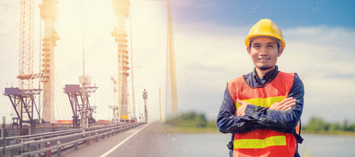 Asian Engineer construction confident on site building and Survey civil architect by contractor business with safety helmet factory background