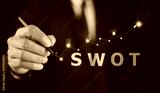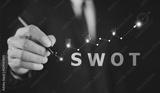 SWOT analysis concept, businessman drawing swot analysis strategy for business plan and growth