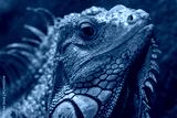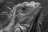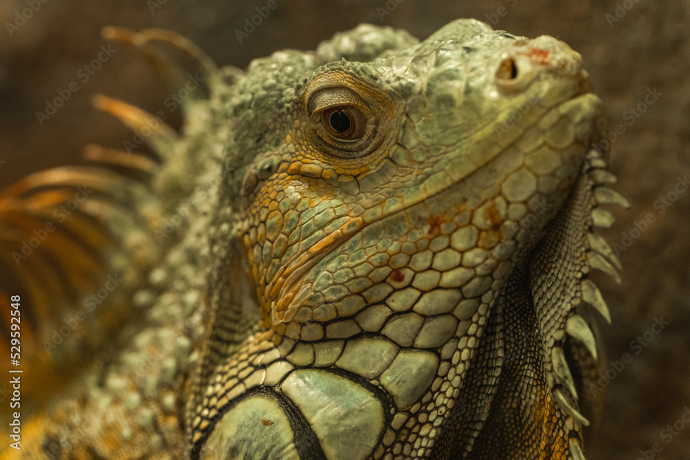 Large green iguana sitting on a stone. Close up of American lizard reptile iguana in a terrarium