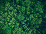 Aerial top view of summer green trees in forest in rural. Drone photography