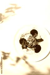 Baked camembert in parma ham on brioche with berry jam. Elegant food - hot appetizer of camembert and ham in summer menu. Cheese appetizer in fine dining. Summer menu.