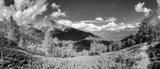 View of trees, boulders and mountains from the way to Cascades de Radule, Corsica, France on the way to Paglia Orba.