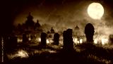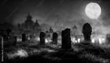 Horror cemetery at night.Digital art