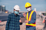 Asian Engineer construction are worker employee working by safety control helmet on site building
