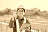 Asian Engineer standing outdoor on site construction posting confident , Engineer construction happy job success with in target planning