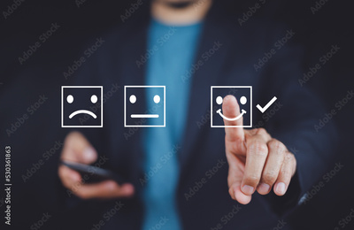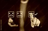 Businessman giving rating with happy icon, Customer satisfaction survey concept