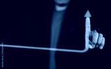 Business growth concept, Businessman pointing arrow graph and chart, corporate growth plan or business development to success and growing growth concept