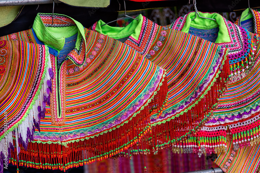 Selling traditional Vietnamese clothing at the market. Vietnam