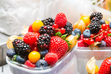 Fresh berries strawberry, blueberry, blackberry in box