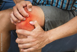 Man holding knee with suffering from knee pain on bed.