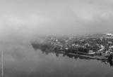 Morning fog over the city and the Neva river.