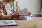 Business Documents, Auditor businesswoman checking searching document legal prepare paperwork or report for analysis TAX time,accountant Documents data contract partner deal in workplace office.
