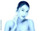 Beautiful Asian young woman touching soft cheek smile with clean and fresh skin Happiness and cheerful with positive emotional isolated on white background. Self care of Beauty and Cosmetics Concept